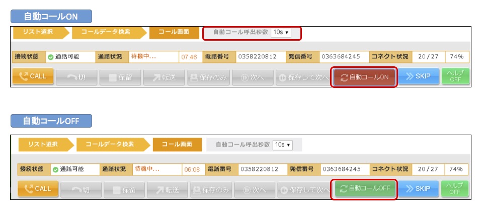 などが、とてももったいなく感じてきます。そのときに便利なのが「オートコール」機能です。 これは、電話をかけた先が不在で誰も出ないまま一定時間が経過すると、自動的に切断して次の番号に発信するという機能で、意外なほど時間の短縮につながります。 もちろんオートコール機能は随時オンオフを変更することができます。