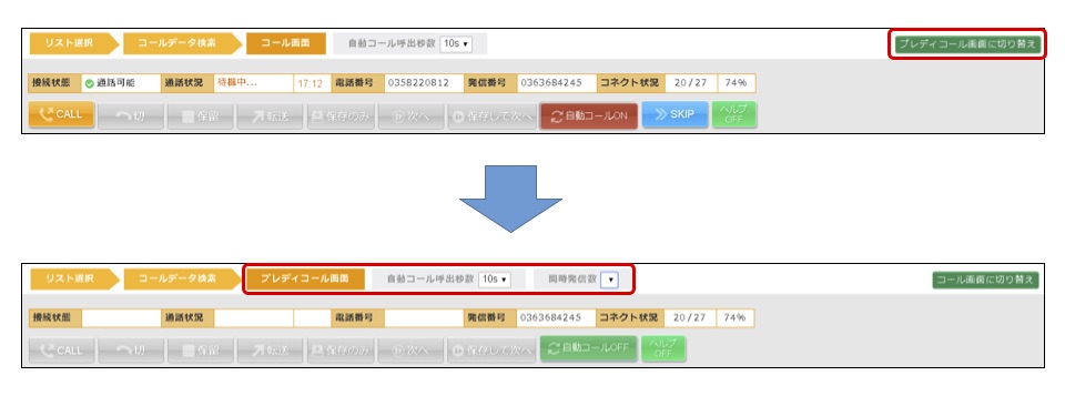 この「プレディクティブ」という言葉は、聞きなれない方もいるかと思いますが、コールセンターには不可欠な機能です。 これは登録されているリストに対して、システムがオペレーターの席数より多くの回線数で自動的に発信し、繋がった通話のみをオペレーターに割り当てるというもの。 個人宅は不在であることが多いため、オペレーターが発信をしても、そのほとんどが待ち時間になってしまうケースが少なくありません。 そのため、そこはシステムに任せて、オペレーターにはトークに集中してもらおう!という仕組みです。 「電話を架ける」「不在だったら次に架ける」という部分をシステムが担当し、その先の「相手が出た場合」のみオペレーターが行うので、オペレーターは待ち時間なくトークをスタートできます。非常に効率的に業務を行えますよ。 「でも、オペレーターが全員の通話中の場合、誰も出られないのにシステムがひたすら電話を架け続けてしまうのでは…? と心配される方がいるかも知れませんが、もちろん、そこは設定で架電数を調整することができます。 上の画面ががプレディクティブコールがオフ、下がオンとなっており、この機能を活用することで、業務効率のアップした運用が可能となります。 紹介した各機能は、以下の記事でもご説明しています。 コールセンター業界でよく使われる5つの用語 CTIを導入する一番のメリットはもちろんコール数のUPですが、その他にも2度架けの防止や一度発信した履歴(会話内容)の管理といったことも挙げられます。 始めのうちは慣れない部分もありますが、使い続けることで精度の高いリスト管理に繋がり、オペレーターのトーク分析といったトーク自体の質を上げる施策もできますよ。 ドリームソリューションではCTIシステムの導入はもちろん、テレアポの効率的な方法や組織管理のノウハウなども併せた、総合的なコンサルティングを行っております。 テレアポ業務のさらなる効率アップに興味がありましたら、ぜひお気軽にご相談ください。 ▼製品についてはこちらをご覧ください。 クラウドCTI「ドリームコール」 | 株式会社ドリームソリューション