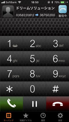 あらかじめ電話帳にを登録しておけば、このように社名が出るのですぐわかります。