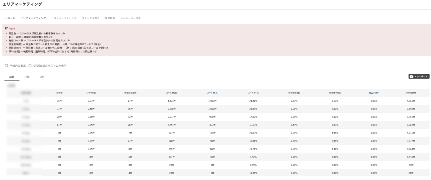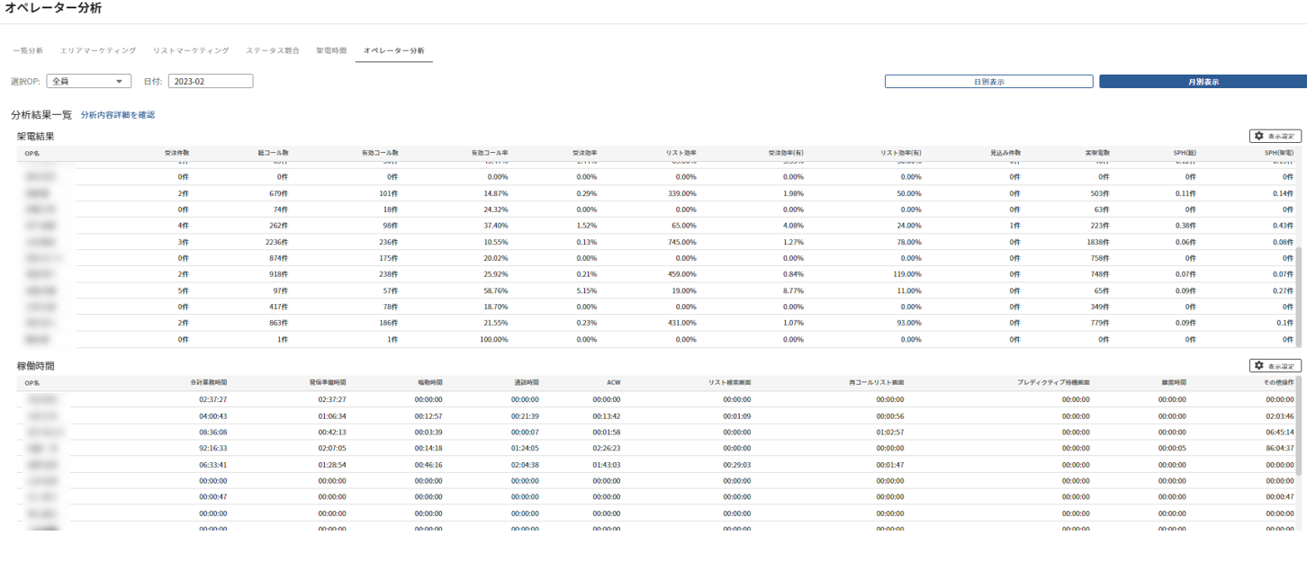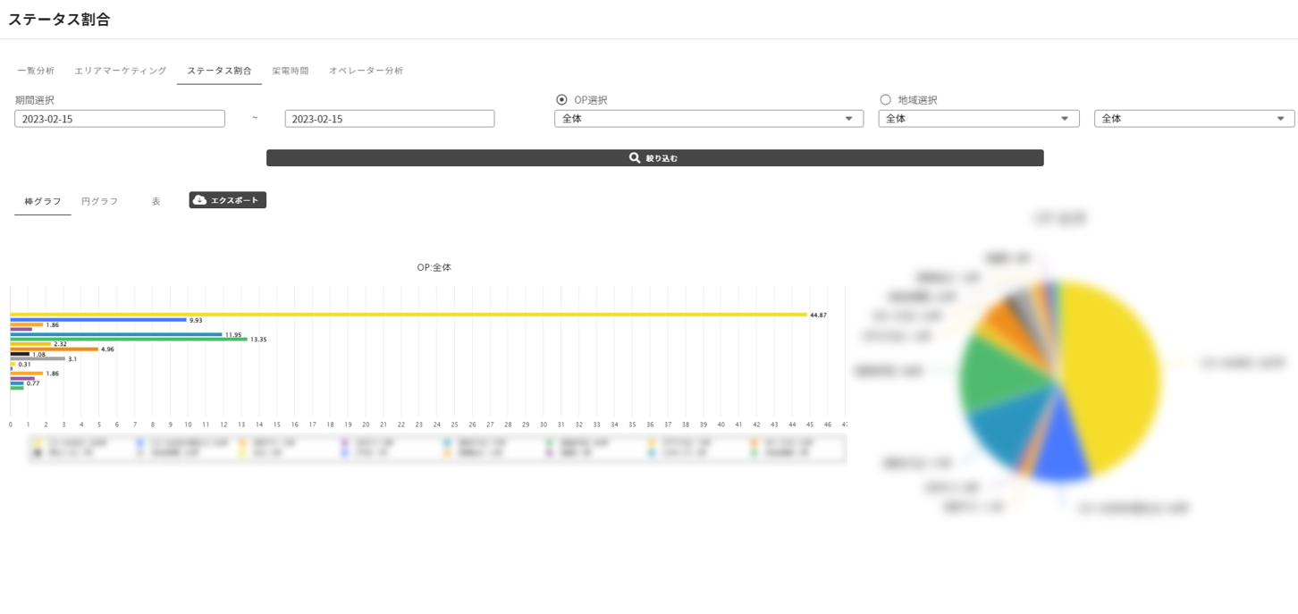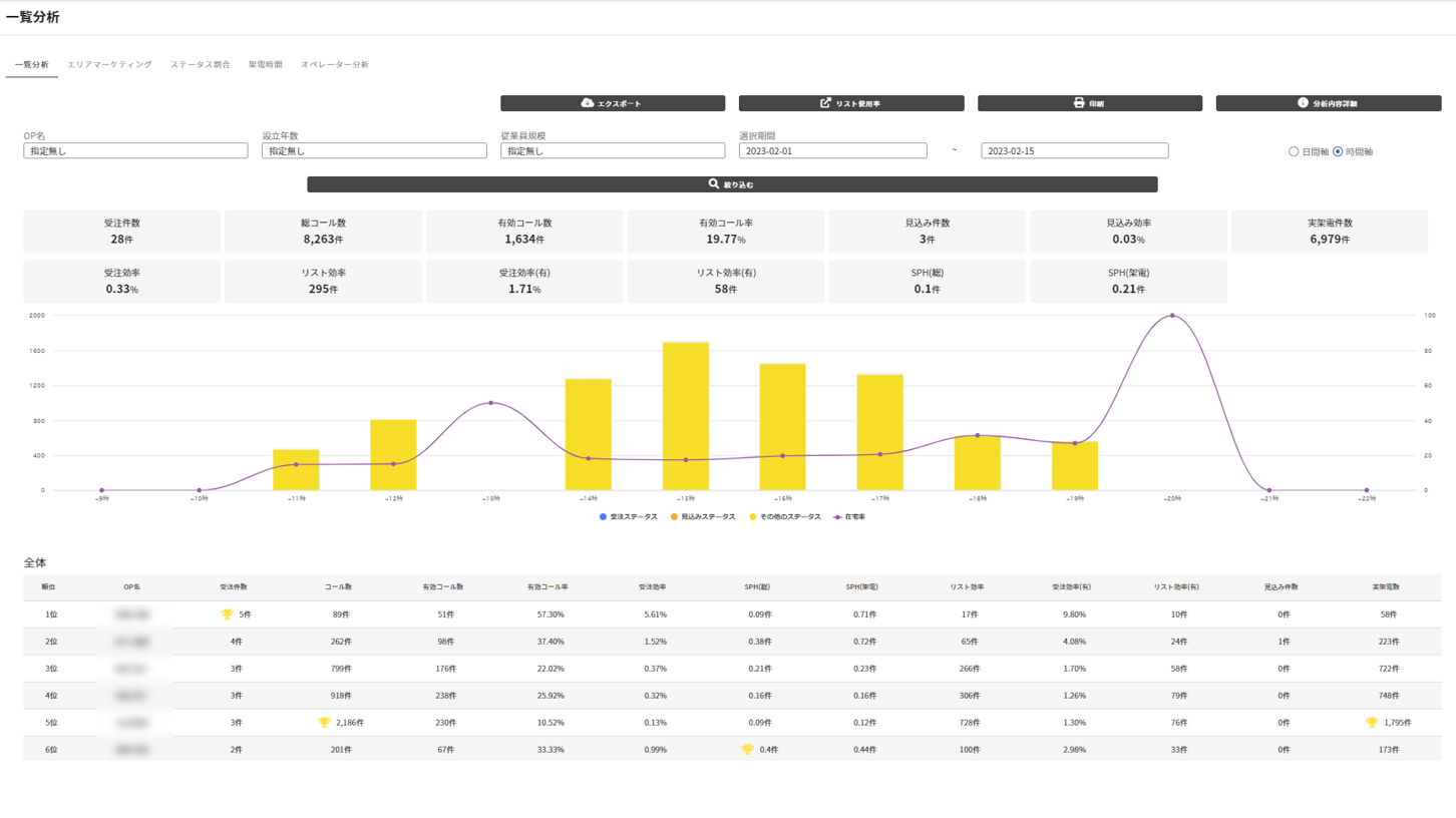 6種類の分析機能から受注効率、リスト、OPの架電状況を分析可能